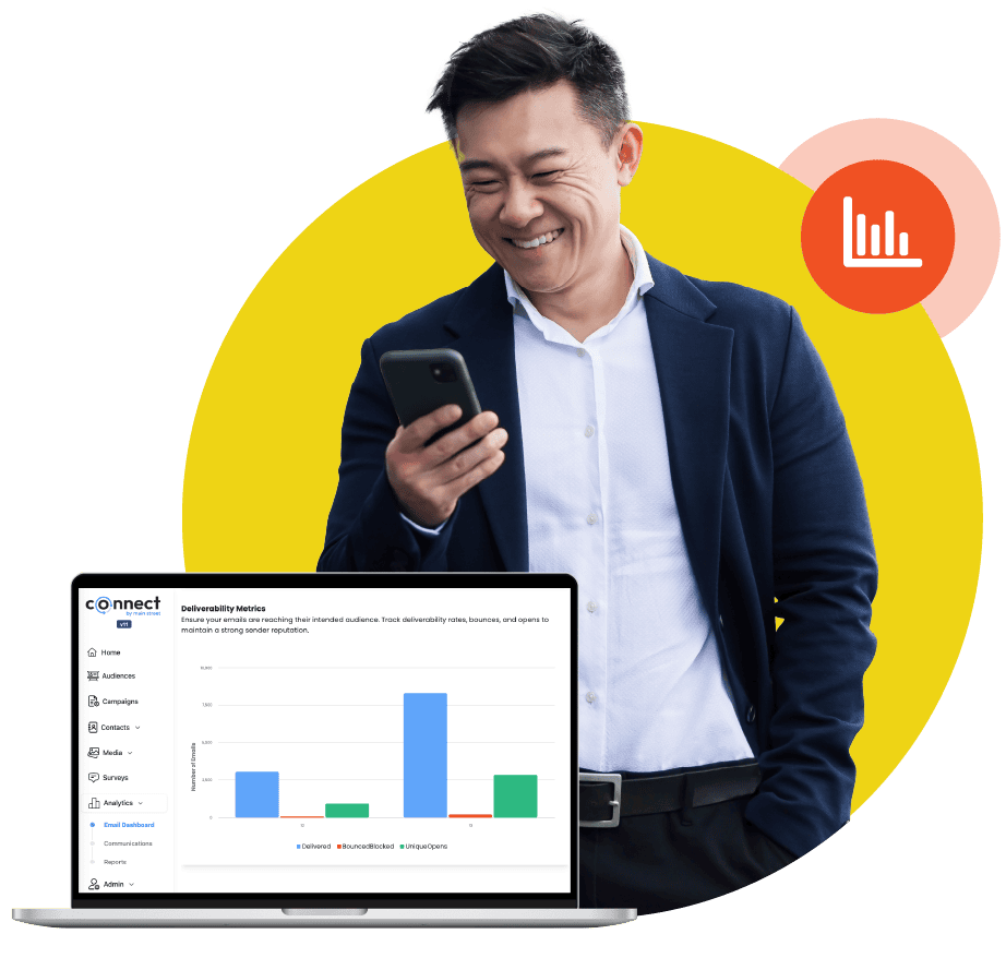 Our all-in-one marketing and engagement hub, Connect by Main Street, makes it easier than ever to unify your marketing, tap into real-time insights, and drive engagement. Because knowing your customers is just the beginning—knowing what to do with that knowledge is where the real value begins.