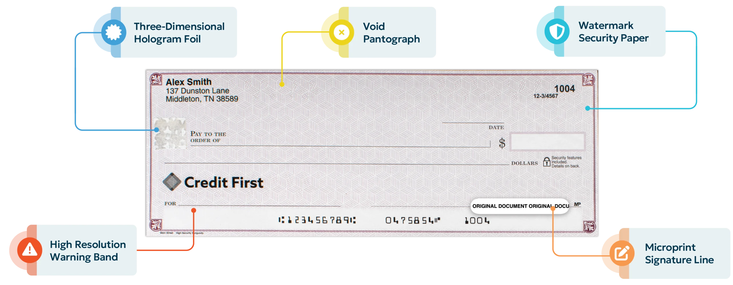 Modern checks, like modern currency, sport enhanced safety features invisible to the naked eye. But what are the parts of a high security check? Let’s take a closer look.